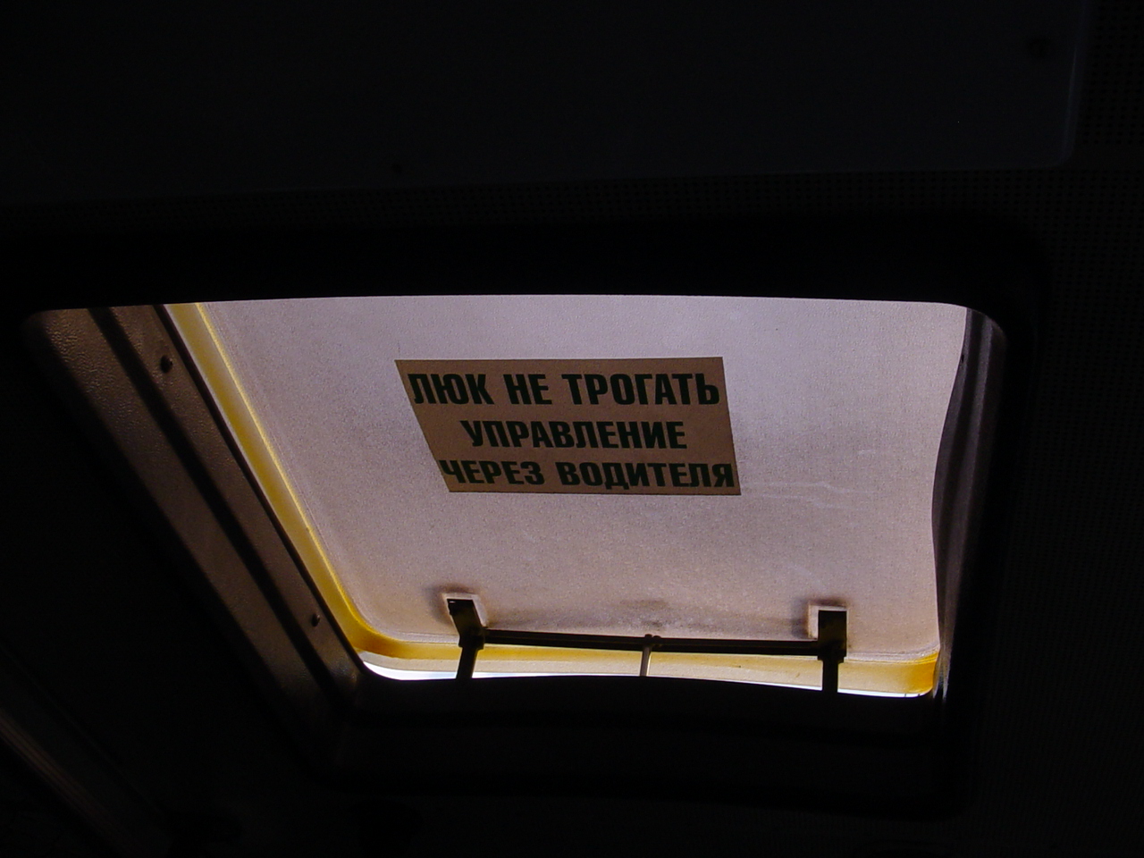 Сели в автобус поехали, а тут на люке такое, естественно я не смог устоять и не сфотаграфировать... Сколько вренмени прошло, а я так и не понял ну как он им управляет-то со своего водительского места?...